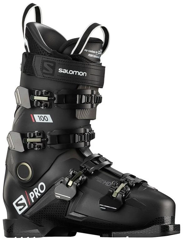 De Salomon S/Pro 100 is een skischoen met een medium volume, geschikt voor gemiddelde voeten of voor skiers met een brede voet die op zoek zijn naar een strakkere fit.