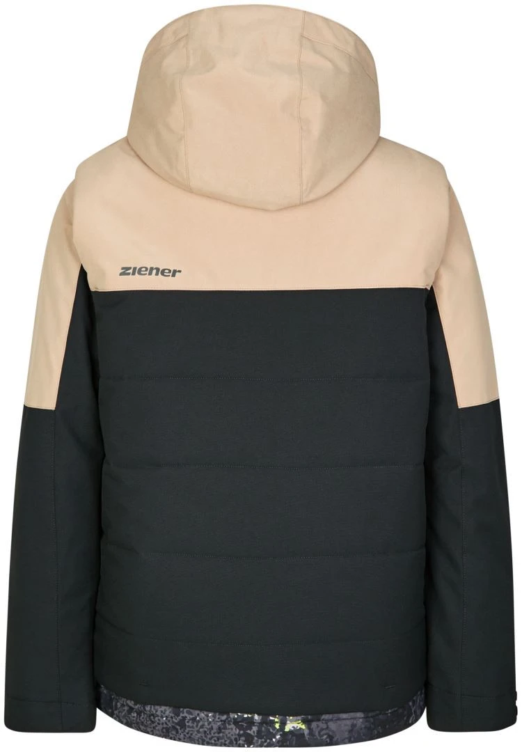 De functionele, gewatteerde ZIENER-ski-jas ANTREYU JUNIOR voor kinderen scoort punten met zijn casual look en past perfect bij de ANTREYU-bodywarmer. Het houdt kinderen betrouwbaar warm bij koud weer dankzij de hoogwaardige 120 g/m² vulling. Het is ook uitgerust met het ademende, waterdichte en winddichte ZIENER AQUASHIELD ® -membraan (hydrostatische kop 10.000 mm/ademend vermogen 10.000 g/m²/24 uur), dat kinderen warm en droog houdt. De warme voering aan de achterkant zorgt voor extra isolatie en de zachte, elastische manchetten zorgen voor een perfecte pasvorm. De belangrijkste naden zijn thermisch afgedicht. Het jack scoort punten met verdere details, zoals een zak voor een skipas, een zak voor een zonnebril en skibril, evenals een sneeuwbeschermer. Kleinere spullen kunnen in de borstzak met rits worden opgeborgen. Het wordt ook geleverd met reflecterende ontwerpelementen. De ski-jas is PFC-vrij dankzij de milieuvriendelijke waterdichtheid.